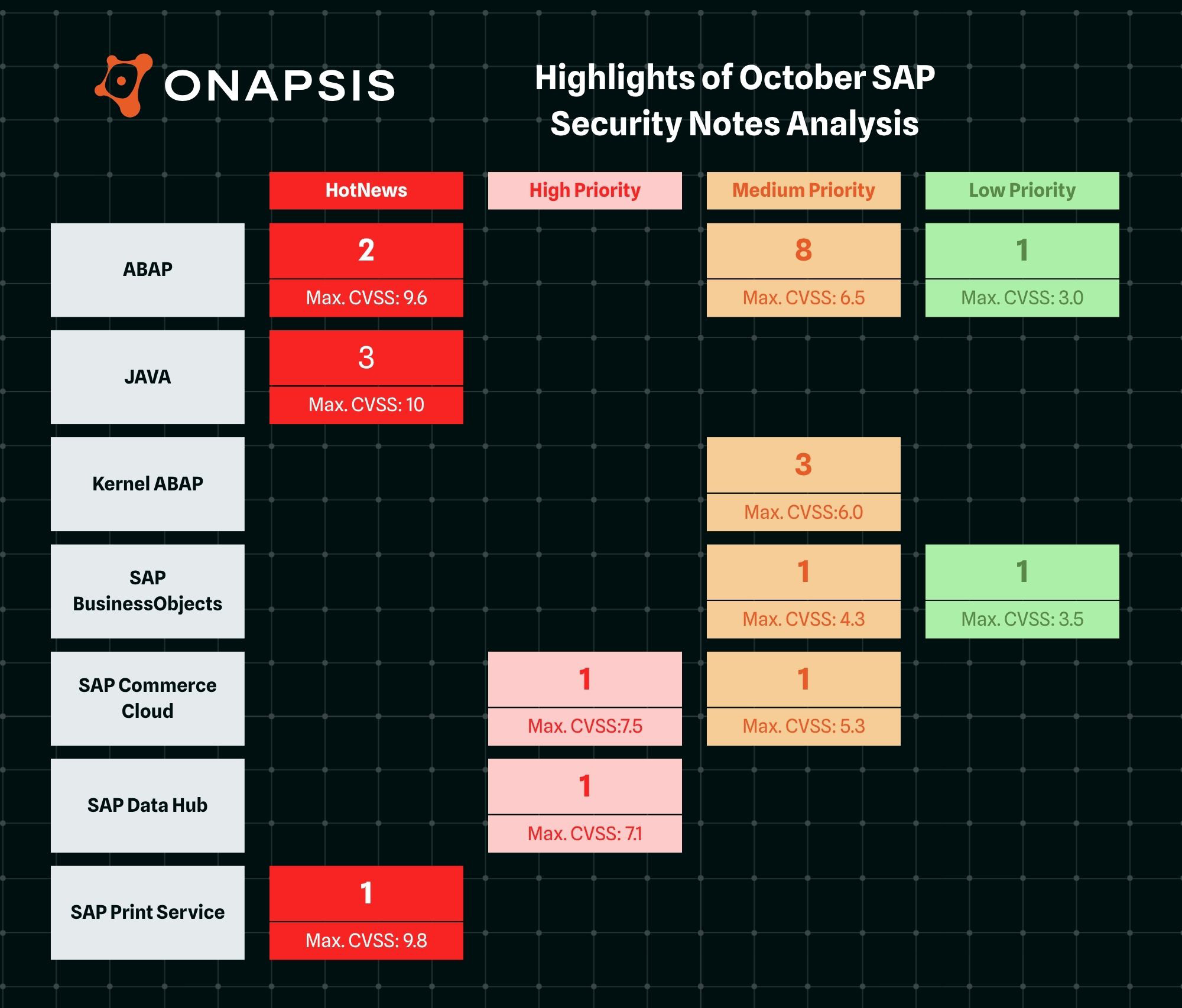 - October Summary – Twenty-three new and updated SAP security patches released, including six HotNews Notes and two High Priority Notes