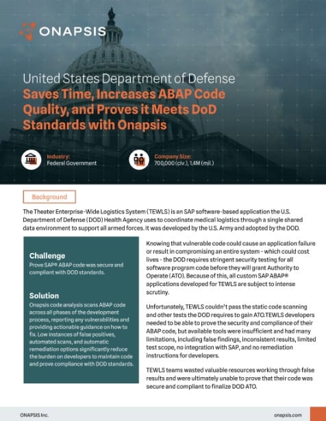 Discover how Onapsis code analysis enabled the DOD to prove its ABAP code met these standards, while also saving developers significant time compared to manual analysis and improving overall code quality.