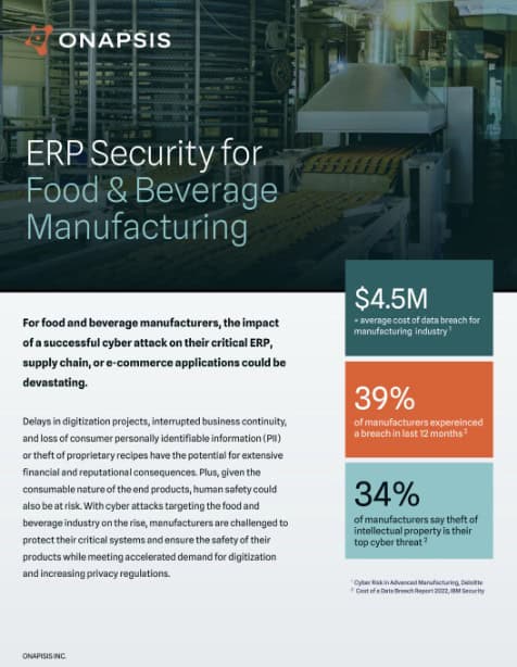 Learn more about how Onapsis helps food & beverage manufacturers protect the systems and data supporting their ERP, digital supply chains, product innovation, and other business-critical operations at onapsis.com/fb-manufacturing