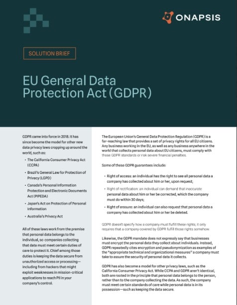 All of these laws work from the premise that personal data belongs to the individual, so companies collecting that data must meet certain duties of care to protect it. Chief among those duties is keeping the data secure from unauthorized access or processing— including from hackers that might exploit weaknesses in mission-critical applications to reach PII in your company’s control.