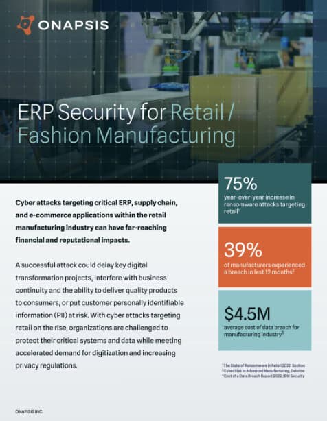 Learn more about how Onapsis helps retail manufacturers protect the systems and data supporting their ERP, digital supply chains, e-commerce, and other business-critical operations. onapsis.com/retail-manufacturing