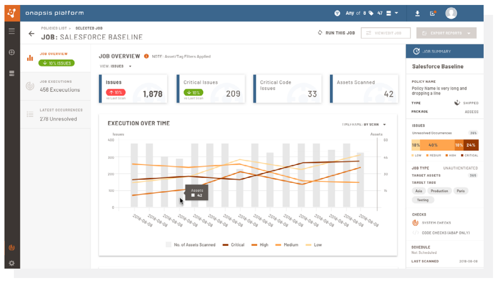 With The Onapsis Platform, your company gains application- and business-level context to the entire application environment, with a 360-degree view of cyber risk across your critical applications, both on-premises and in the cloud. Designed for cross-functional collaboration among IT, cybersecurity, development and audit and compliance teams, The Onapsis Platform gives you: